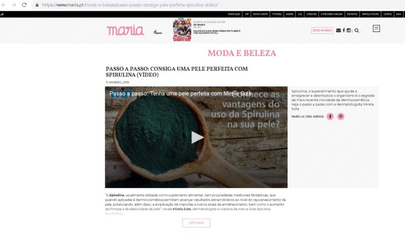 A REVISTA MARIA PUBLICOU UMA REPORTAGEM SOBRE AS VANTAGENS DA SPIRULINA, COM UMA ENTREVISTA (VÍDEO) À FUNDADORA DA MARCA SUTA SPIRULINA TECHNOLOGY, MIRELA SUTA.