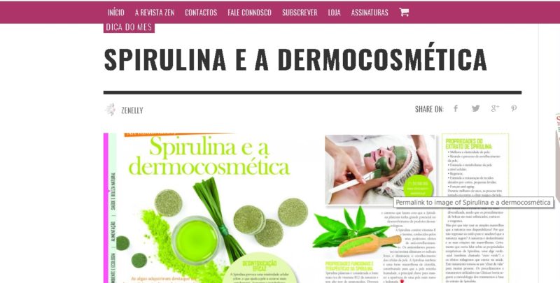 A PUBLICAÇÃO REVISTA ZEN LANÇOU PARA A REDE UM ARTIGO SOBRE OS BENEFÍCIOS DA SPIRULINA, A MICROALGA VERDE-AZULADA NA APLICAÇÃO DERMOCOSMÉTICA. FOI A SUA DICA DO MÊS.